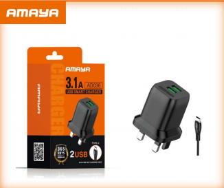 Enhance your charging experience with the Amaya 3.1A Dual USB Smart Charger – smart, efficient, and dependable!