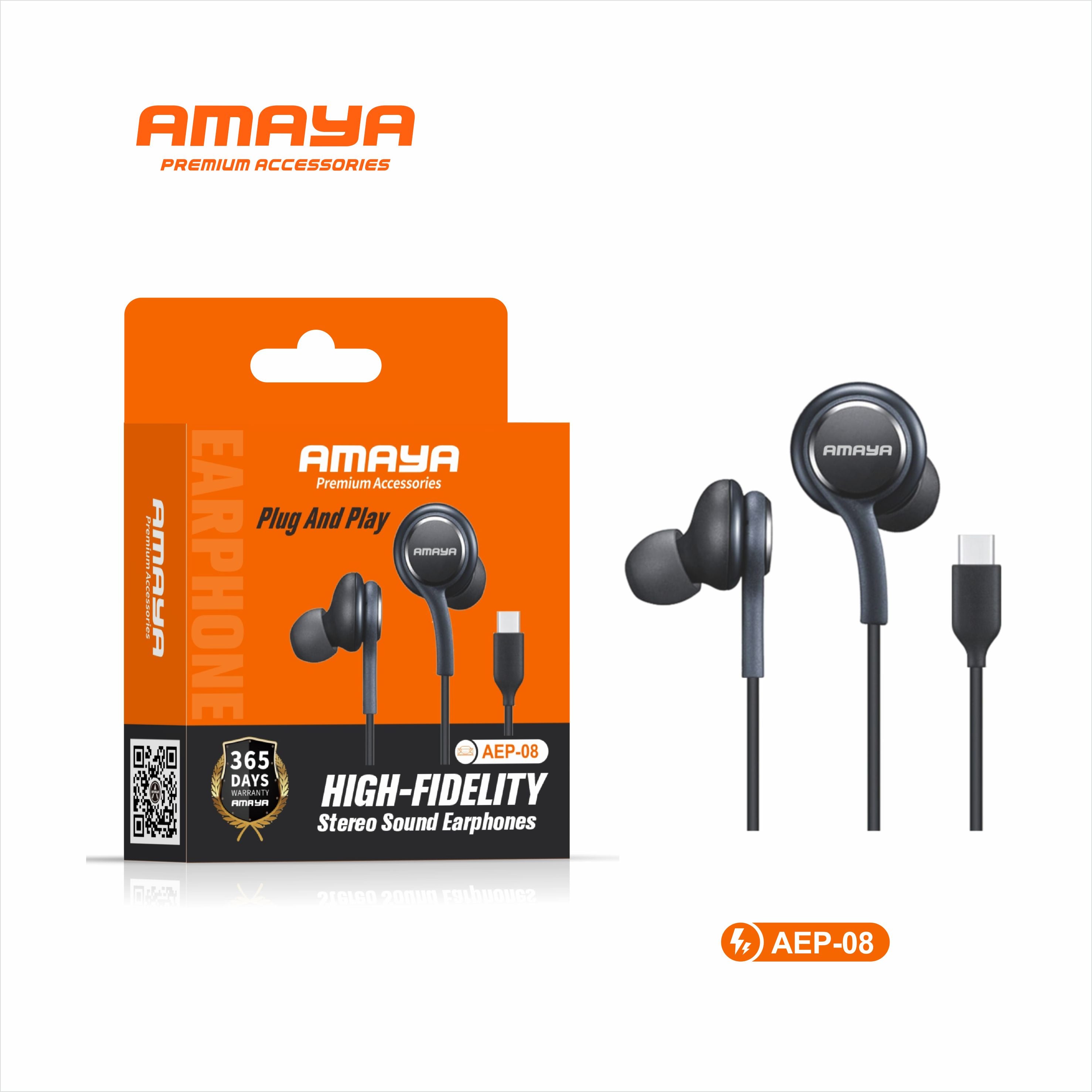 Experience high-quality audio with the Amaya AEP-08 Type-C Wired In-Ear Earphones. Designed for USB Type-C devices, these earphones deliver clear sound and a comfortable fit, making them ideal for daily use, whether you're listening to music, taking calls, or watching videos.