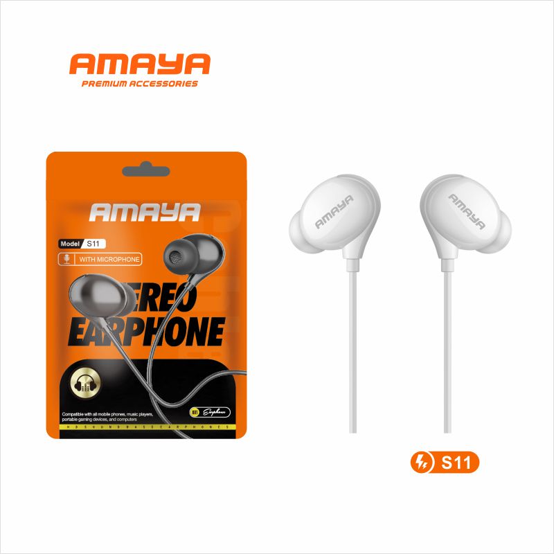 Enjoy high‑quality audio with the Amaya S11 Wired In‑Ear Earphones. Made for devices with a 3.5mm headphone jack, these earphones deliver crisp stereo sound with balanced bass—perfect for music, calls, and multimedia. Comfortable, reliable, and classic.