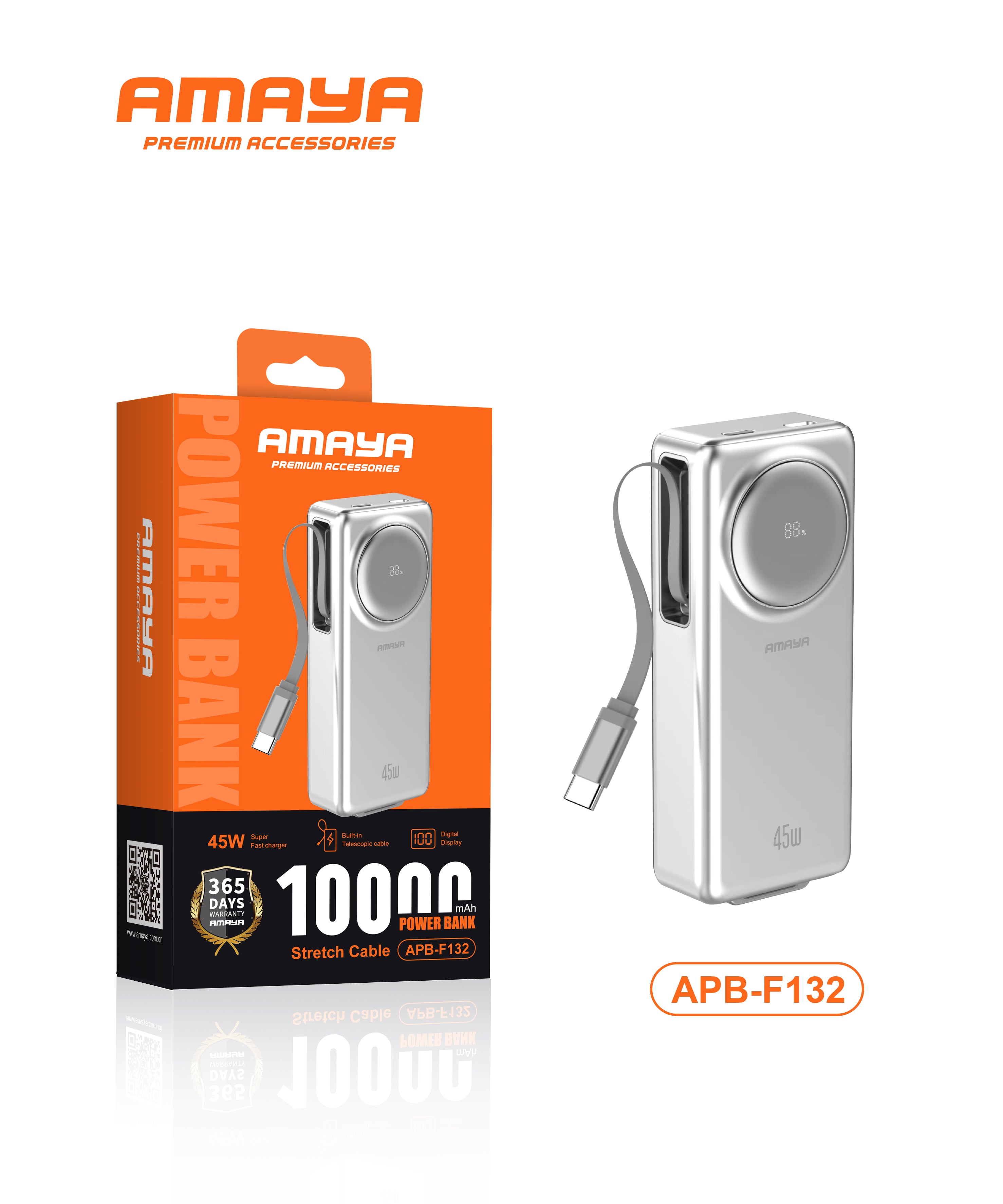 Stay charged and connected wherever you go with the Amaya APB-F132 Power Bank. Designed for modern lifestyles, this powerful 10,000mAh power bank delivers ultra-fast 45W charging and features an innovative built-in telescopic Type-C cable, eliminating the need to carry extra cables. Combining sleek design with robust performance, it’s your perfect companion for work, travel, and play.