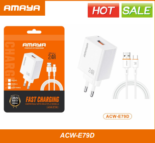 The AMAYA ACW-E79D is a wall charger kit designed for everyday fast charging needs. It features a compact design with a signature orange USB port, consistent with the brand’s aesthetic.