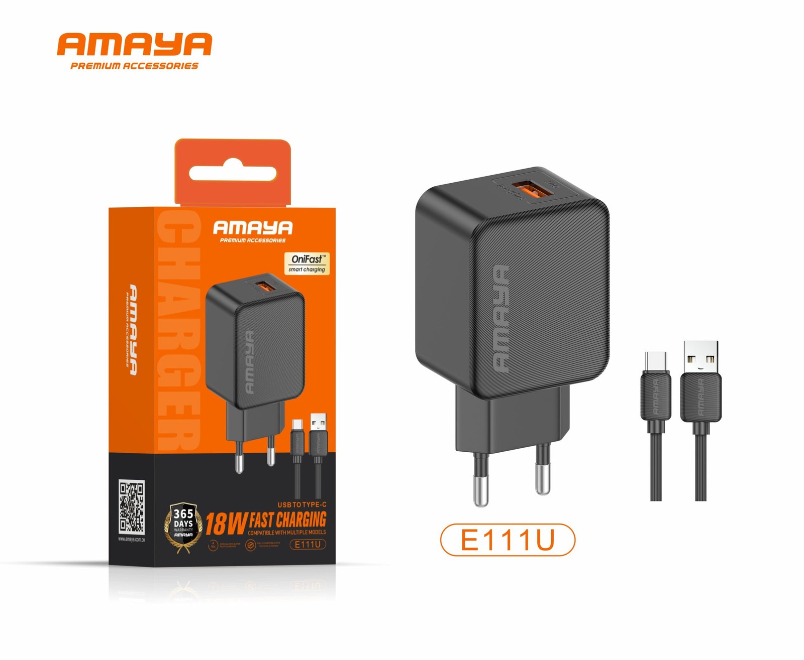 Amaya E111U 18W Fast Charger with USB to Type-C Cable: