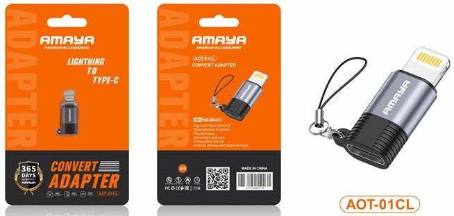 Catchy Brief Description: Future-proof your Apple accessories! The AMAYA AOT-01CL is a compact, robust adapter that converts your device's Lightning port into a high-speed Type-C port, enabling 30W fast charging and USB 3.0 data transfer from your iPhone or iPad.